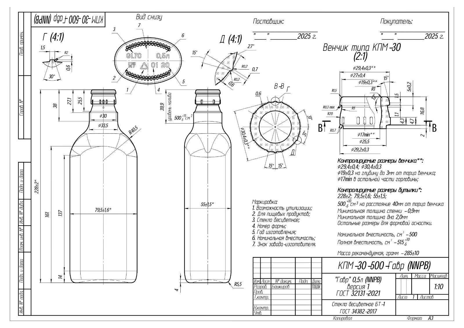 Бутылка подходит как для ручной, так и для автоматизированной линии розлива и идеально подходит для использования в пищевой промышленности и алкогольном производстве.